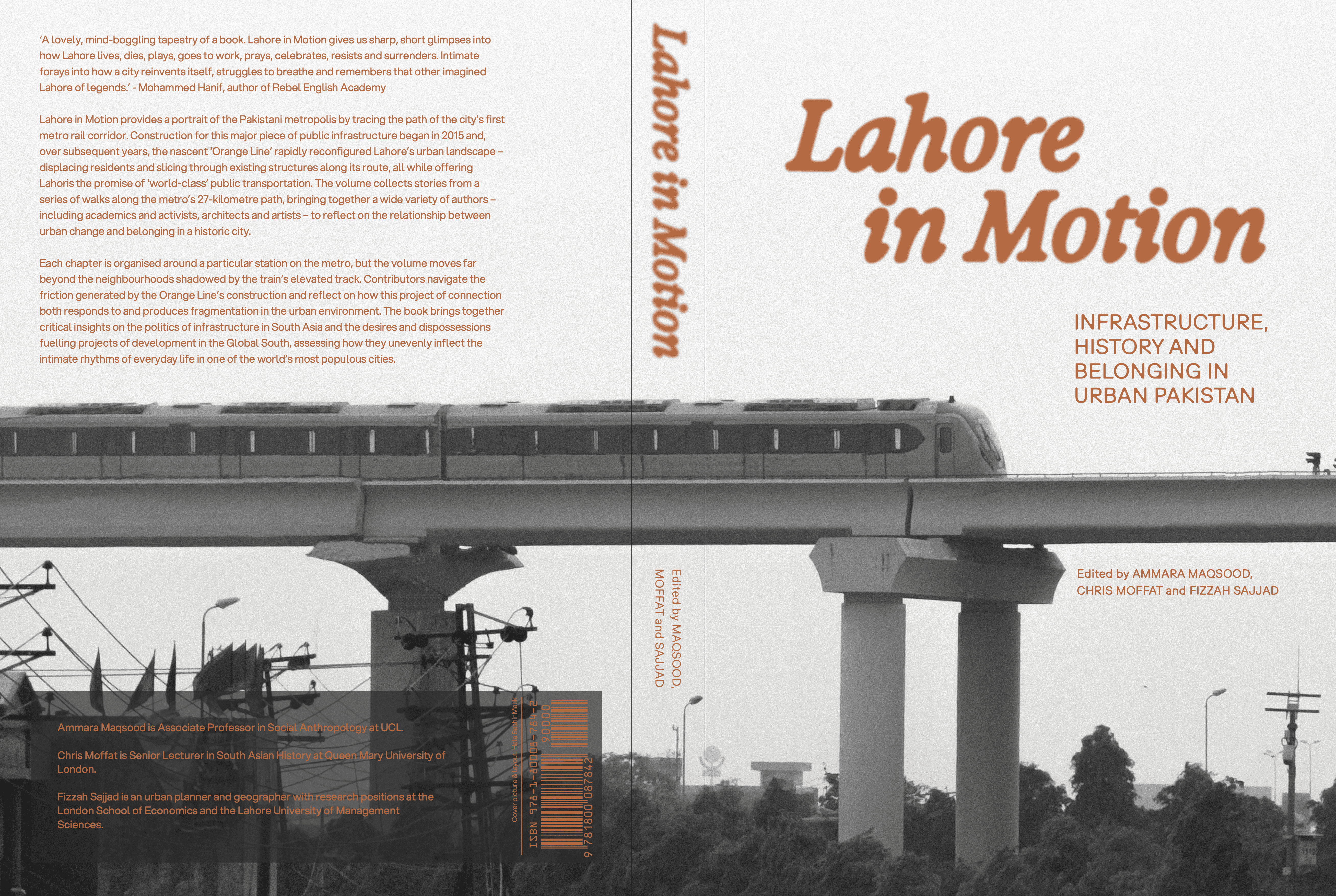 → Cover design for 'Lahore in Motion: Infrastructure, History And Belonging In Urban Pakistan', edited by Ammara Maqsood, Fizzah Sajjad and Chris Moffat. Published by Readings PK.